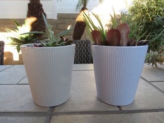 Pair Of Light Gray Wave Ceramic Garden Pots With Succulents $10Huntington Beach, CA