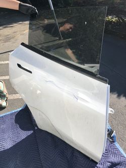 2022 TESLA MODEL Y rear Passenger right door in pearl white color Used Has rip/ tear on the side Comes with glass and door panel $600Bellevue, WA