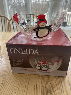 Oneida Hand Painted Glass Christmas Bowl $30Webster, NY