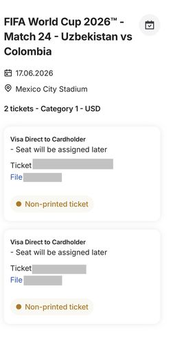 World Cup Tickets Mexico City Venue (2 Tickets)$2,500Fort Lauderdale, FL