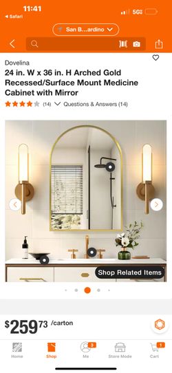 24 in. W x 36 in. H Arched Gold Recessed/Surface Mount Medicine Cabinet with Mirror$200San Bernardino, CA