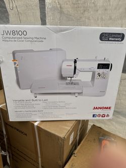 Janome JW8100 Fully-Featured Computerized Sewing Machine with 100 Stitches, 7 Buttonholes, Hard Cover, Extension Table and 22 Accessories$300San Bernardino, CA