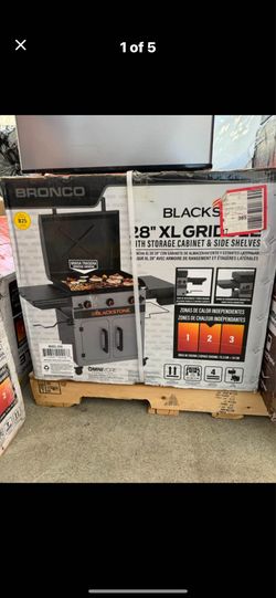 Blackstone Bronco Outdoor Griddle, 3-Burner 28" XL Propane Flat Top Grill with Side Shelves and Cabinet, Gray$500San Bernardino, CA