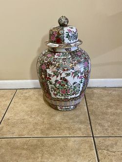 Oriental porcelain Chinese Vase w/Lid 22”H Approx 43” Diameter Stamped/marked$50Hollywood, FL