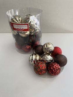 26 - Christmas Ornaments, Shatterproof, Red, Green, Gold, Bronze, In Container$10Hollywood, FL