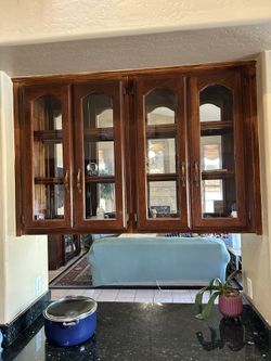 Beautiful, Solid Wood Hanging Cabinet With Glass Doors On Both Sides That Open And Solid Wood Shelves Excellent Condition$150Scottsdale, AZ