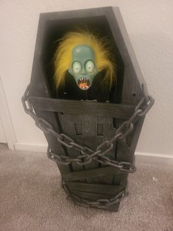 Gemmy Animated 18" Cursed Coffin Zombie Screamer Halloween Prop.