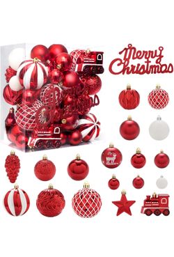 Christmas Ball Ornaments Set, 65 pcs Red & White Shatterproof Xmas Balls Decorative Hanging Ornaments$25Queens, NY