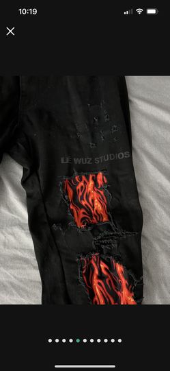 Le wuz Studios mens sz 36/30 flame/fire ripped Jean Pants ( used )$88Miami Gardens, FL