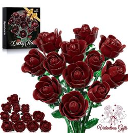 Burgundy Red Rose Bouquet Building Set Valentine's Day & Mother's Day Artificial Flowers Botanical Collection Centerpiece Retro Decor$30Houston, TX