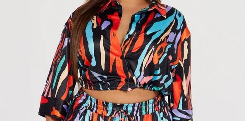 Women's colorful patterned button- up top size small$15Houston, TX