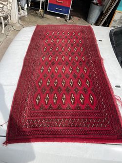 ANTIQUE HANDWOVEN TOURKMON VINTAGE WOOL DYE RED Tribal Bokhara Bukhara carpet runner$200Artesia, CA