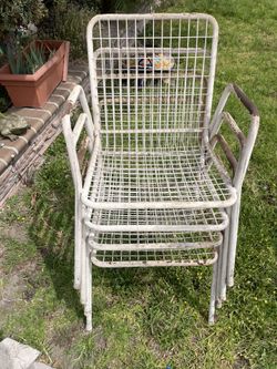 Vintage Set of Four 4 White Emu Garden Rio Stacking Metal Patio Chairs Outdoor Furniture Made in Italy$400Artesia, CA