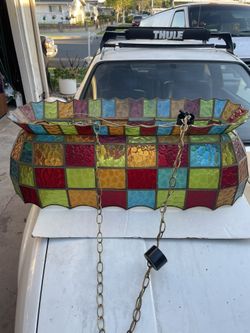 1970 Vintage Tiffany Style Stained Glass Lamp Hanging Light flowers Design$250Artesia, CA
