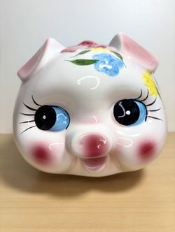 VTG Piggy Bank Large 12”x 8” 1960’s Hand Painted Ceramic W/ Pink Ribbon Kitsch$60Chandler, AZ
