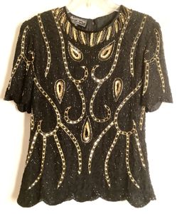VTG ROYAL FEELINGS Women's Black 100% Silk Beaded Top Size M$29Alpharetta, GA