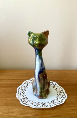 VTG Glazed Ceramic Cat Figurine MCM Multicolor Retro Signed SAINI 6.5/8” Tall$16Johns Creek, GA