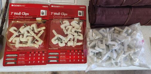 Closet wire shelf Wall Clips in white. 2 sealed packages of 7 each and a half full bag of loose Clips. PRICE FOR ALL.