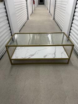 Modern Rectangular Two Tier Coffee Table w/ Gold Metal, Glass & Faux Marble (44 x 22)$75Clayton, NC