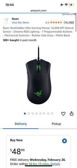 Razer DeathAdder Elite Gaming Mouse: 16,000 DPI Optical Sensor - Chroma RGB Lighting - 7 Programmable Buttons - Mechanical Switches - Rubber Side Grip$30Ontario, CA