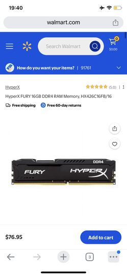 HyperX FURY 16GB DDR4 RAM Memory, HX426C16FB/16$20Ontario, CA