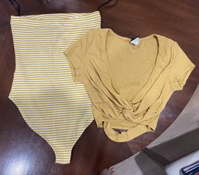 Yellow Striped Bodysuit + Mustard Crop Top (Size Small)$12Cherry Hill, NJ