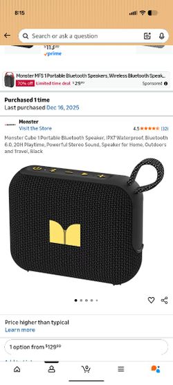 Monster Cube 1 Portable Bluetooth Speaker$50Seattle, WA