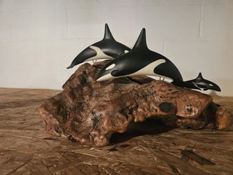 Vintage John Perry Orca Whale Sculpture on Driftwood – Nautical Coastal Decor$75Brunswick, OH