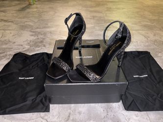 Ysl Saint Laurent Amber 105 Black Glitter Ankle Strap Sandals$200Los Angeles, CA