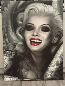 30x40 Marilyn Monroe LA Tattoo‑Style Canvas – Dodgers Hello Kitty, Grayscale with Red Lips$100Torrance, CA