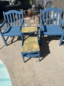 Solid wood patio wide arm chairs - 24 inches wide/ seat to floor 17.5 inches (2)- sturdy With Vintage Side Table $160Fresno, CA