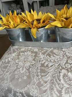 Galvanized Pot With Artificial Sunflower $30Fresno, CA