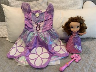 Toddler girls Halloween costume - Disney Sofia the first costume dress size 3/4 and dancing doll$10Visalia, CA
