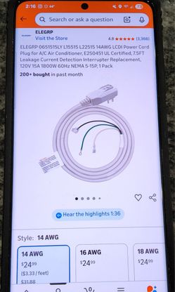 Window Air Conditioner Replacement Cord$20Killeen, TX