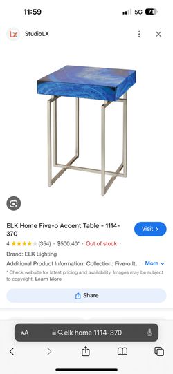 Elk Home Five-O Side Accent Table$125Laguna Niguel, CA