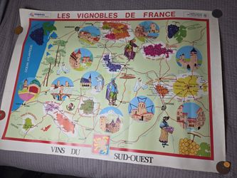 🇫🇷 Vintage French Wine Map Poster – Les Vignobles de France (Sud-Ouest) SOPEXA W6$85Houston, TX