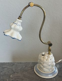 Art Deco Quilted Porcelain Boudoir Lamp with Brass Arm and Ruffled Shade$185Schertz, TX