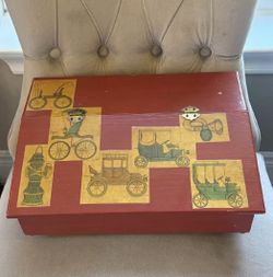 Vintage Decorative Wooden Hinge Box with Early Automobile Lithograph Transfers$78Schertz, TX