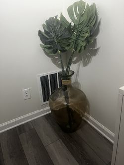 Large Amber Glass Floor Vase with Faux Monstera Leaves – Modern Tropical Decor$55Lawrenceville, GA