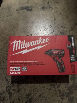 Milwaukee M12 12V Lithium-Ion Cordless 1/4 in. Hex Screwdriver Kit with 2 1.5Ah Batteries, Charger and Tool Bag$90Chula Vista, CA
