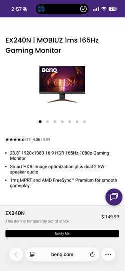 BenQ EX240N Gaming Monitor (165Hz) - READ DESCRIPTION$90Irving, TX
