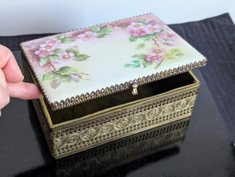 Vtg Gilt Filigree Ormolu Trinket Jewelry Box w/Hand Painted Floral Porcelain Lid$138Alpharetta, GA