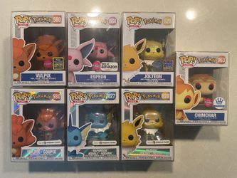 Pokemon Funko Pop set *MINT* Amazon SDCC Exclusive Flocked Pearlescent Pokemon 628 with Protector 580 Eeveelutions Espeon Vaporeon Jolteon 963 Chimcha$159Flower Mound, TX