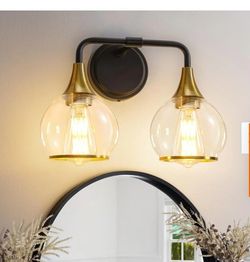 14 in. 2 Light Brushed Gold/black Vanity Light With White Globe Glass Shades $35Ellenwood, GA