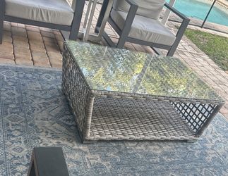 Patio Rattan Table Plastic Wicker Gray Beige Outdoor Glass Top $25Miami, FL