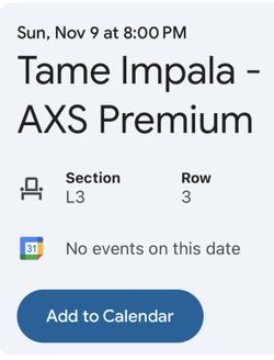 Tame Impala Seat$410San Diego, CA