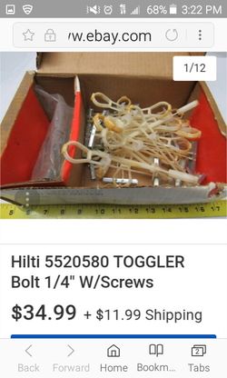 Hilti toggle bolts.$25Lenexa, KS