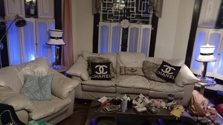 Vintage Italian Peal White Real Leather Couch Chiar Ottoman!$475Louisville, KY