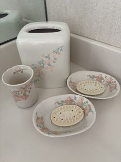 Vintage 80s Pastel Floral Ceramic Bathroom Set - 6 Pieces$30Lake Worth, FL