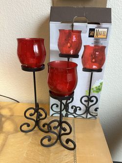 Rustic Iron Votive Holders w/ Red Crackle Glasses-NEW$12Henderson, NV